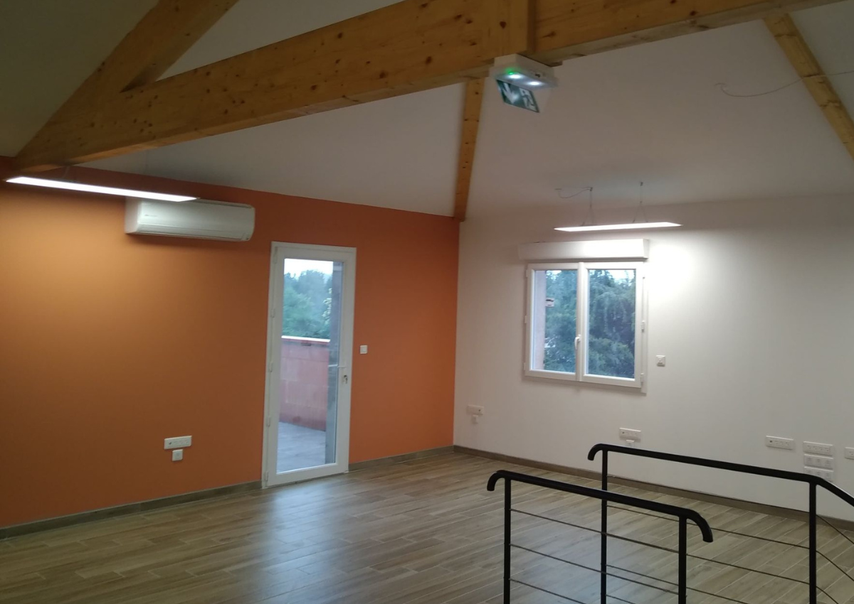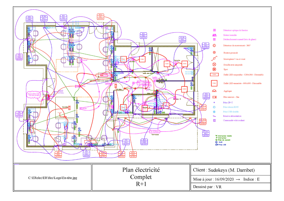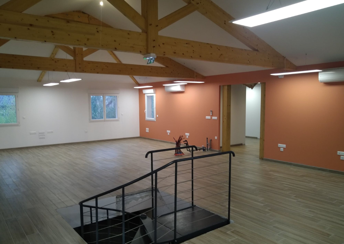 Réhabilitation du RdC avec goulottes 3 compartiments et postes de travail.